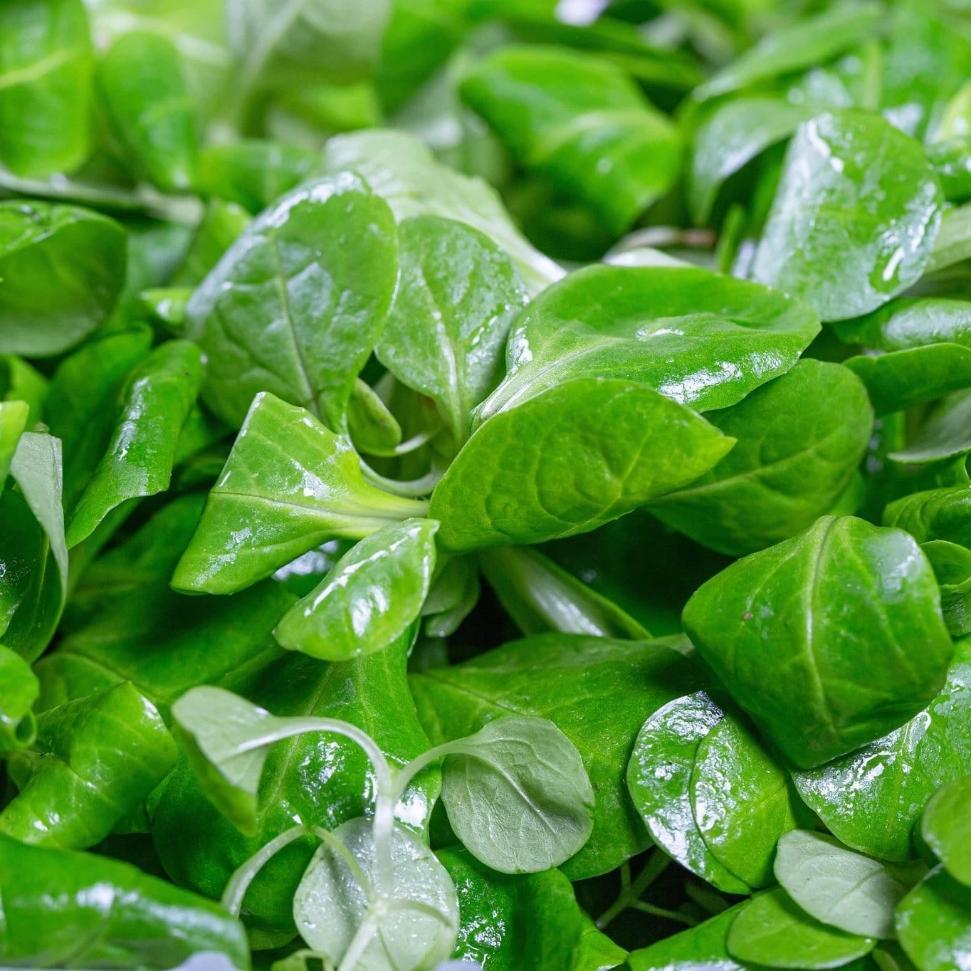 - Space-saving, compact dark green salad leaves also known as Lamb’s Lettuce
