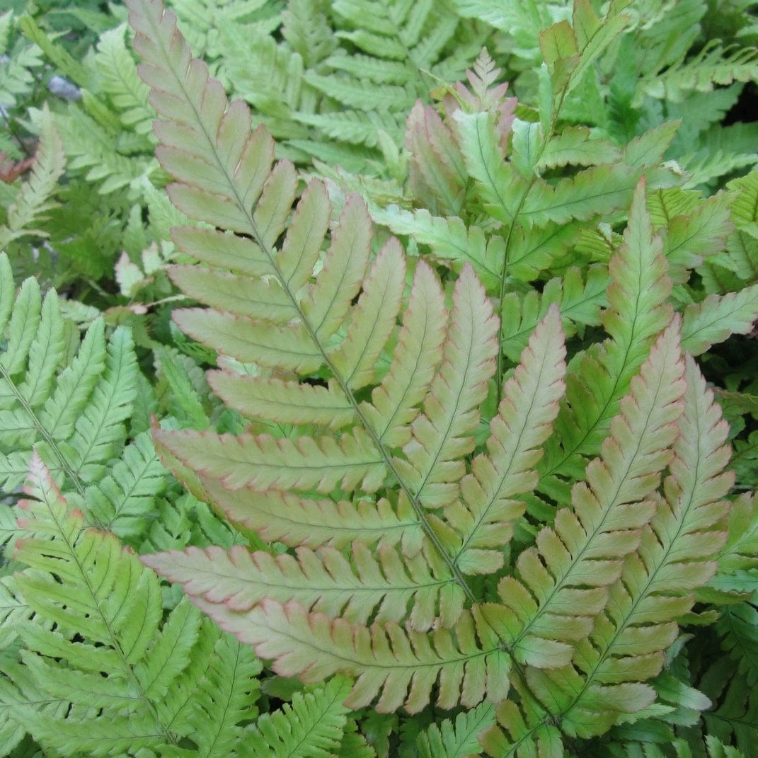 - A beautifully colourful fern with broadly triangular, arching fronds in a shiny dark green