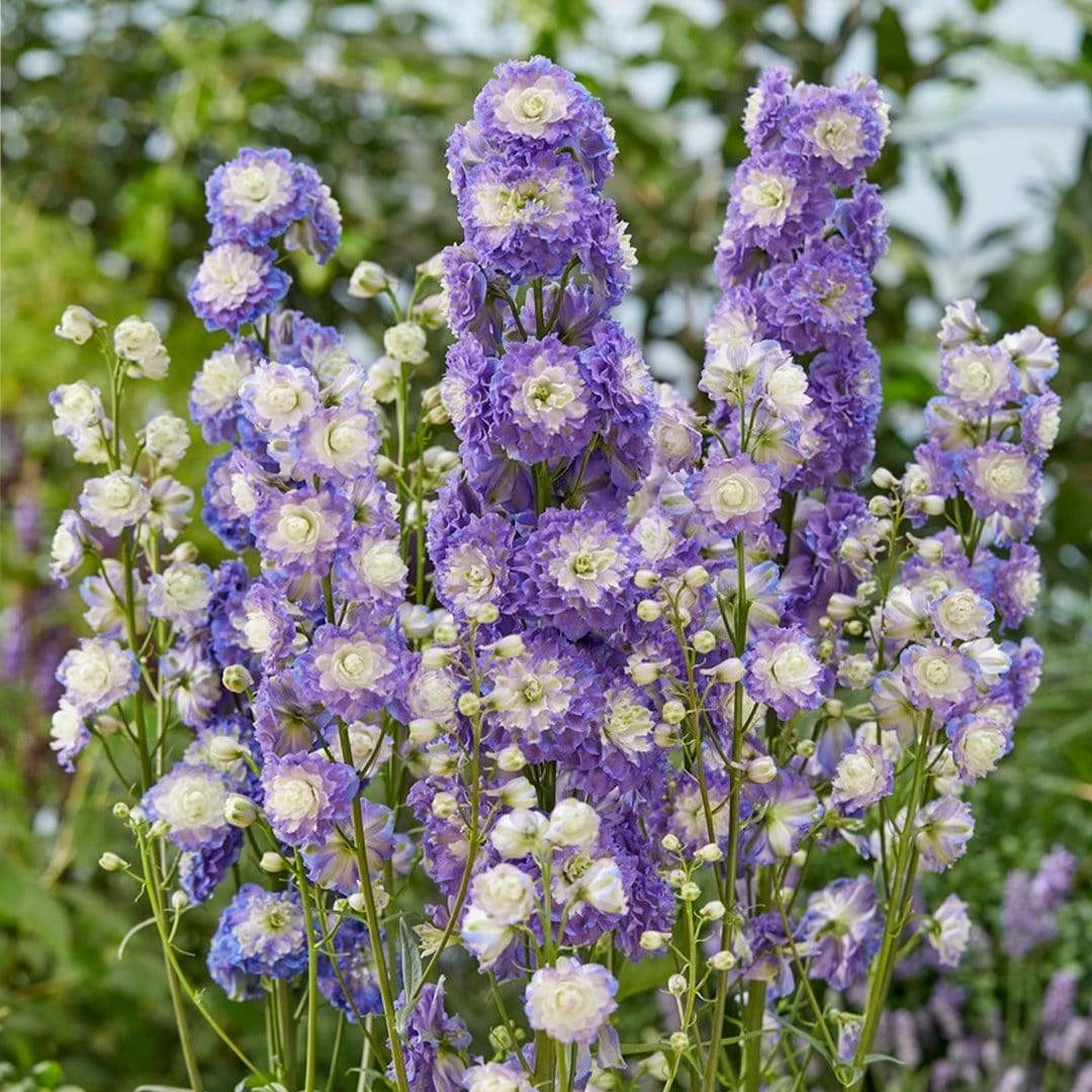 - Stunning spires of two-toned frilly double flowers