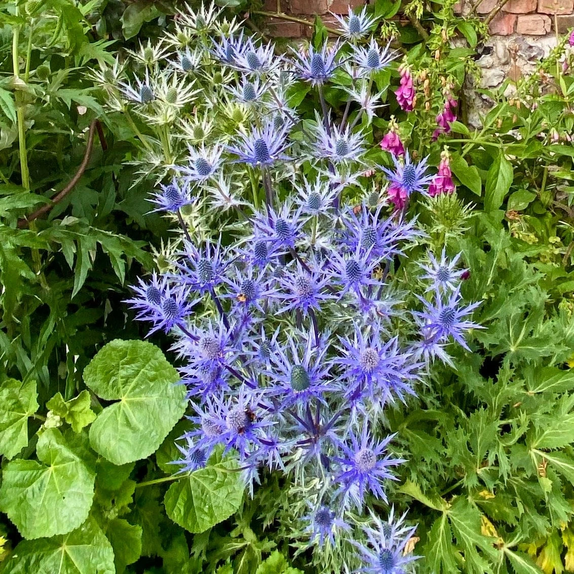 - This spectacularly spiky sea holly brings so much coastal charm to your garden, you’ll almost smell the salt air. Bright blue thimble-shaped flower heads are circled by a ruff of spiky, silvery-blue bracts, on branched stems rising from shimmering green foliage