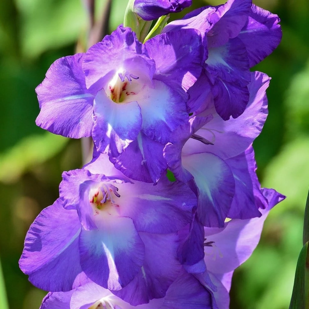 - Tall arching stems with violet purple flowers