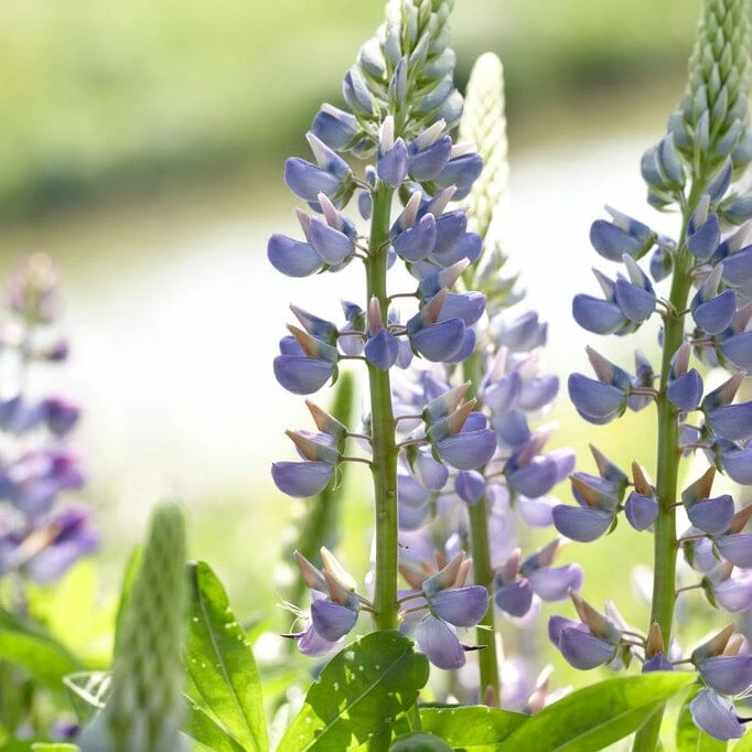 - Tall spires packed with clusters of cobalt blue flowers – the classic lupin!